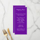 Cardápio violeta de casamento roxo e branco. Escolha a opção "personalizar" para reposicionar o texto ou alterar o estilo, o tamanho ou a cor da fonte.