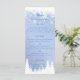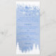 Carteira de cardápio adorável com o tema do inverno. Belo azul claro com flocos de neve e inverno, pinheiros cobertos de neve. Personalize com seu texto e escolha sua fonte favorita. Todos os elementos de design podem ser movidos e redimensionados para suas especificações.