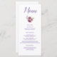 Liste seu menu de recepção de casamento floral roxo usando este design com tema de cor d'água maravilhosa. Com o "Menu" escrito no topo usando a fonte roxa cursiva, todas as suas informações são impressas em fontes roxas legíveis em fundo branco. Personalize como quiser.