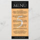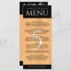 Adicione sofisticação às comemorações do aniversário de casamento da madeira de 5 com este menu de janto, que contém elegantes caracteres em falso, grão de madeira clara e fundo preto. Personalize com nomes de casal, datas de casamento, detalhes do local, itens de menu e mensagens de parabéns. Design © W.H. Sim. Mais informações em zazzle.com/expressionsoccasions