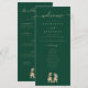 Cartão de Programa de Cerimônia de Casamento de Dinossauros, divertido Noivo e Noiva T-Rex em Verde Escuro