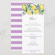 Cartão de menu de limões em aquarela elegante com detalhes roxos para combinar com meus convites e papelaria na mesma linha. Você pode alterar as listras de lavanda no verso para qualquer cor que desejar, entrando na ferramenta de design e alterando a cor do fundo no verso.