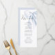 Menu Chá de fraldas Azul do Arco. Apresentando um delicado arco azul claro e uma escrita romântica.