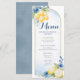 Cartão de menu Chá de fraldas de compressão principal com limão floral azul