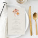 Apaixonem-se por esta design romântica para os tijolos do chá de panela do outono ou chás temáticos do café. O Elegante design apresenta um fundo macio esbranquiçado, graduado com um buquê de flores de cor d'água boho de tonalidade pastel, flanqueando um café com café perfeitamente preparado. Personalize com o menu de eventos.