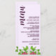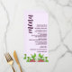 Chá de panela temático do jardim com dahlias brancas, framboesas e prigos de menta com tipografia roxa