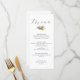 Um simples cardápio elegante para o seu chá de panela apresenta uma tipografia moderna com um sotaque de cor da água cítrica. Personalize com seu nome e data de chá de panela.