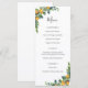 Um cartão de menu perfeito para um casamento ou chá de fraldas de almoço. Apresentando laranjas de clementina de cor aquosa e verde. Personalize com o texto do menu para um brunch, almoço ou janto.