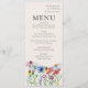 Carteira de cardápio de flores silvestres com flores silvestres de aquarela. Esta design botânica russa tem uma bonito fronteira de flores silvestres, incluindo a margarida-de-papoila-dormideira, a cabeça-seca e o trevo. Uma floral moderna elegante com tema de jardim boêmico. Por favor, navegue na minha loja na coleção Charm de Flor Selvagem, para obter itens correspondentes.