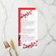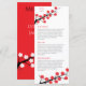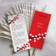 Apresente suas seleções de refeições de recepção em estilo com este cardápio de casamento com temas florescentes. A frente branca apresenta flores de cereja vermelha, um ramo preto, e texto preto, com os nomes do casal realçados em vermelho. O dorso vermelho, adornada com flores brancas de cereja e um ramo negro, oferece um contraste espantoso, perfeito para um casamento moderno e sofisticado.