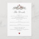Celebrate your special day with this elegant botanical wedding drinks menu, featuring a charming illustration of two swans with a delicate red ribbon. The design is enhanced with subtle botanical accents and two small red hearts, adding a touch of romance. This menu is perfect for a formal or rustic wedding, providing a beautiful way to display your beverage selections, from spirits and wines to beers and signature cocktails like the "Wedding Cake Martini." Make your wedding reception truly memorable with this sophisticated and enchanting menu.