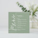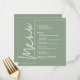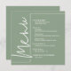 Um cartão de janto verde de sábio quadrado apresenta suas opções de menu em letras brancas quic, perfeito para uma recepção de casamento moderna, janto de ensaio de casamento, festa de aniversário ou qualquer evento especial com um janto de sentar. Personalize facilmente com suas opções de janto e detalhes. Mais cores e tamanhos em nossa loja.