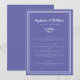 Simples, minimalista e elegante Menu de Casamento apresenta um design contemporâneo com uma dupla faixa branca e nítida dentro de um fundo azul muito pweri periwinkle. A formulação tradicional proporciona sofisticação eterno mas moderna. Personalize o design do casamento com os detalhes do menu em letras brancas e roteiro. A parte traseira da placa corresponde ao periwinkle correspondente.