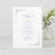Este cardápio de casamento com a fronteira geométrica da frente tem a elegância eterno de um clássico Chinoiserie azul e branca e impressionante motif florescente no reverso. A coleção apresenta padrões sofisticados e delicados motivos florais inspirados na porcelana tradicional chinesa, criando uma estética refinada e romântica. De convites lindamente projetados para coordenar suprimentos e decorações partidárias, cada detalhe é cuidadosamente trabalhado para trazer um senso de graça e charme para o seu dia especial. Personalize cada peça com seus detalhes para uma experiência de casamento verdadeiramente única. Procure ID1094 para ver todos os produtos de coordenação nesta coleção.