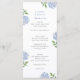 This beautiful design features blue hydrangea blooms and your custom text. Use the template form to add your information. The Design Tool can be used to access the advanced editing menu where you can change the font, colors and layout of the text, or add text to the back of the menu.