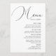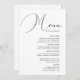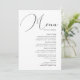 Elegante cardápio minimalista de caligrafia branca e negra.