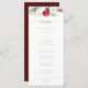 Este clássico cartão de janto floral branco burgundy é perfeito para um casamento rústico. A design apresenta a cor-de-água, flores brancas, borrifadas e douradas e bagas com folhagem verde dispostas em buquês elegantes. Este menu pode ser usado para recepção de casamento, janto de ensaio, chá de panela ou qualquer evento.