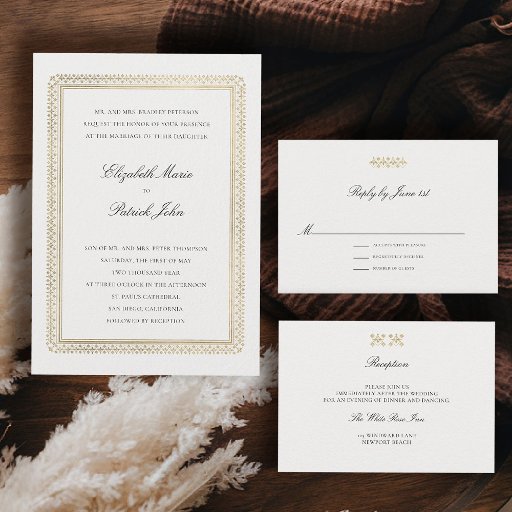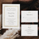 Apresente os detalhes do jantar de casamento com sofisticação atemporal usando o Menu de Casamento Moderno Clássico Formal Dourado Lys Marfim. Com um fragmento do padrão inspirado na flor-de-lis com uma sutil sobreposição de dourado falso, este menu marfim adiciona um toque refinado e elegante às suas configurações de mesa, ao mesmo tempo em que se coordena perfeitamente com o conjunto de convites.