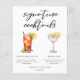 Esta folha de papel de cardápio de assinatura de casamento do jardim apresenta uma simples tipografia negra acima de 2 das suas bebidas favoritas e seus ingredientes para o seu bar de casamento de verão. Um chic Long Island Iced Tea e Lemon Drop Martini desenho adiciona um talento divertido ao seu menu de bar. Preencha com os nomes dos casais e a data para sua recepção.