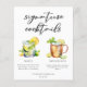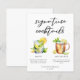 Esta ficha de cardápio de coquetéis de assinatura sofisticada apresenta uma tipografia negra simples acima de 2 das suas bebidas favoritas e seus ingredientes para o seu bar de casamento costeiro. Um chic Mojito e Moscou Mule desenham um talento divertido no menu do seu bar. Preencha com os nomes dos casais e a data para sua recepção.