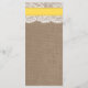 A coleção de casamentos de areia amarela é um design impressionante que apresenta um adorável fundo de efeito de burvolta rústico com uma trim romântica de efeito de renda branca vintage terminada com um incrível dólar de areia e fita amarela. Esses cartões de menu podem ser personalizados para sua ocasião especial e tornariam a modelo perfeita para menus de casamento, menus de chá de panela, menus de festa de noivado, menus de festa de aniversário e muito, muito mais. *Observe que o Zazzle só vende produtos impressos para que este item não tenha nenhum material real de burlap, renda, dólar de areia ou fita.