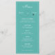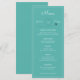 Este menu apresenta um plano e uma trilha em forma de coração ao redor do nome da noiva e do noivo. Há espaço para 5 cursos. Todos os detalhes do menu podem ser editados. As cores incluem aqua, rosa, branco e preto.