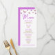 Este é um menu de chá de fraldas com tema de borboleta roxa. O design consiste num tema de brilho da borboleta roxa. menu de borboletas, decorações, menu de decoração de eventos, ideias de chá, menus de aperitivo de comida