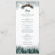 Este cardápio de casamento de pinheiros apresenta uma fonte moderna e divertida e ricos vergreens contra uma página branca. Adicione o menu de comida à frente e o menu de bebida no verso. Perfeito para um casamento rústico ou qualquer ocasião especial!