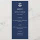 Náutico, azul marinho, âncora, Menu de Comida de Casamento moderno. Por favor, personalize-o com os seus detalhes.