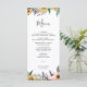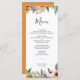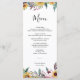 O Menu de Comida Rústico de Rosa de Girassol e Borgonha apresenta uma bela aquarela com rosas de burlões, girassóis, flores silvestres e verde. Perfeito para um Casamento de outono. Este Programa de Cerimônia de Casamento é bonito para um casamento no campo ou um casamento no jardim