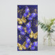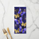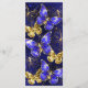Composição de borboletas luxuosas de safira e joias de ouro em fundo azul texturizado.