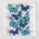 Composição vertical de borboletas de morfo realistas, azuis e brancas sobre fundo texturizado de cinzas. Borboleta azul Morpho.