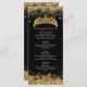 Um fundo preto rico mostra uma tiara espumante ouro com um confete falsa de ouro a chover no topo desta placa de menu para coletar no fundo. Faz um cartão de menu perfeito para a festa de Quinceanera mais bestial de sempre! Isso também pode ser personalizado para o aniversário de qualquer garota cintilante ou outra celebração. Disponível com produtos correspondentes.