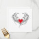 Coração vermelho pintado artificialmente com cinza de asas de anjo, decorado com contorno liso preto.