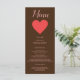 Este menu de recepção de casamento apresenta um adorável menu de recepção de casamento rosa e castanho. Com "Menu" escrito no topo usando uma fonte cor-de-rosa cursiva, todas as suas informações são impressas em uma fonte legível a rosa sobre um fundo marrom. Personalize como quiser. Coração: Clipart: AMBilustrações http://www.etsy.com/shop/AMBillustrations/