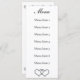 Este cartão de menu Corações Interbloqueados preto-e-branco pode ser personalizado com o menu de casamento. No verso, o cartão apresenta o nome do casal e a data do casamento.