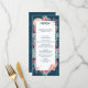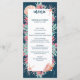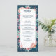 O menu de casamento do tema "Embaixo do Mar", náutico, apresenta um recife de coral de cor d'água e conchas marinhas coloridas em tons de aqua, menta, coral e rosa sobre fundo azul marinho profundo. Coordena-se com a minha coleção "Recife Tropical" e é perfeita para temas de casamento de praia, náutica, costeira e destino. Estoque da KL original