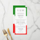 Este cardápio elegante e moderno apresenta um tema italiano com uma imagem da bandeira da Itália impressa ao fundo e também no verso. Você pode substituir os itens do cardápio pelas opções de comida de sua escolha. É adequado para um evento de café da manhã, brunch, almoço ou jantar, casamento, banquete ou restaurante.