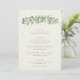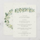 Um cardápio de casamento de três pratos com creme, apresentando uma grinalda de snowberries pintadas à mão e eucalipto na frente e uma coroa na parte de trás. Todo o texto é totalmente editável, e os pontos espalhados na frente e atrás podem ser excluídos antes de encomendar, se preferir. Por favor, visualize esta Coleção na minha loja para cardápios com arranjos florais alternativos, um número diferente de pratos e em diferentes tamanhos/cores/formatos. Itens coordenados também disponíveis.