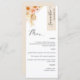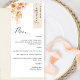 Porquê gastar cartões de lugar e cartões de menu quando pode ter um Menu elegante All-in-one personalizado com cada nome de convidado! Design contemporâneo, simples e elegante com detalhes florais de cor d'água refinados numa bela mistura de pêssego, laranja, escamudo, coral empoeirado, creme e tons de champanhe. Elementos modernos de caligrafia escrita à mão. Estique no canto superior direito em tom de creme de champanhe com nome de convidado a preto. De volta no mesmo creme de champanhe que a listra. Capacidade de alterar ambas as cores de distribuição ou vice-versa selecionando "personalizar mais". NOTA: adicione um nome de convidado a cada menu, adicione um menu no carrinho de compro; depois volte ao menu, adicione o segundo nome de convidado e adicione o menu para comprar o carrinho...continue com este processo com todos os nomes de convidados na sua lista. Zazzle não recebe listas de nomes de convidados para o impressão. Para primeiros nomes de convidado curtos, adicione com sua barra de espaço do teclado alguns "espaços" vazios antes do nome ao centro. Design disponível em uma variedade de opções de cores. Parte da nossa coleção "Peach Floral Delight in Cream Champagne" com uma variedade de produtos de coordenação disponíveis. Visite a coleção inteira em: https://www.zazzle.com/collections/peach_floral_delight_and_cream_champagne-119627301812293761