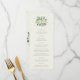 Um cardápio de casamento com quatro pratos e creme, apresentando um buquê/ramalhete de nevascas e eucalipto pintados à mão na frente e uma coroa na parte de trás. Todo o texto é totalmente editável, e os pontos espalhados na frente e atrás podem ser excluídos antes de fazer o pedido, se preferir. Por favor, visualize esta Coleção na minha loja para cardápios com arranjos botânicos alternativos e em diferentes tamanhos/cores/formatos. Itens coordenados também disponíveis.