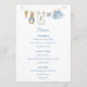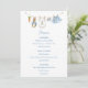 The menu features a sweet watercolor clothesline strung across the top proudly displaying tiny, adorable items, each featuring a cute bunny dressed in blue in a soft watercolor style. The back features the clothesline motif and a soft cloud. Easily add your own details and change the font style, size color and placement if you would like to. This menu is a beautiful detail, inviting your guests to share in the "hoppy" anticipation of your baby boy's arrival!