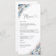 Menu da Cerimônia de Casamento Floral Blue Boho. Este na moda e elegante Convite para Chá de Casamento apresenta um lindo Blue Boho Floral pintado manualmente. Localize itens correspondentes na Coleção Floral de Boho Azul.