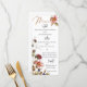 Este menu floral de aquarela é perfeito para adicionar um toque de encanto rústico à sua experiência de jantar de convidados. Este menu maravilhosamente projetado apresenta uma série de margaridas rosa, flores silvestres de queda e folhas verdes e marrons em um design de aquarela quente. A palavra Menu no topo é escrita em um tom de cobre rústico quente, enquanto o curso é exibido em fontes pretas divertidas e rústicas. Adicione um toque de elegância à sua recepção com este menu colorido e rústico.
