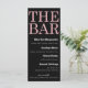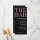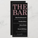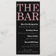Este menu de bar personalizado apresenta um design brilhante preto e rosa sofisticado. O título, "O Bar" é impresso no topo em uma fonte grande com estilo brilho rosa sobre um fundo preto sólido. A lista de coquetéis e bebidas é impressa abaixo em branco. É perfeito para qualquer festa ou evento.