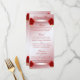 A parte dianteira tem um modelo para um menu do comensal e a parte traseira tem um campo para os nomes dos casais. Apenas preencha os campos do texto fornecidos ou clique-os sobre "personalizam-na!" para adicionar seus próprios imagem e/ou texto. Você pode igualmente escolher um tipo, um tamanho, e uma cor da pia batismal - toda a personalização que você goste.