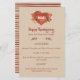 Menu de Ação de Graças Folha de Coração de Aquarela Personalizada Menu de Ação de Graças Janto de Ação de Graças