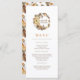 Este elegante Menu de Janto Ação de Graças apresenta lindas folhas de aquarela, abóboras, laranjas e flores dispostas em uma bela coroa com o ditado "Dê Obrigados". A parte traseira do menu é laranja para corresponder ao trabalho de arte na frente. Personalize facilmente com os detalhes do menu.