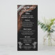 Menu Novo Ano Negro & Prateado com Vidros de Champanhe é um design com véu fino e arejado com cor de cobre, o design destaca as elegantes listras prateadas e pepitas prateadas exibidas no véu. Dois óculos de champanhe elegantes apresentam o tema do Feliz ano novo.