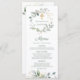 Baptism Menu - Este design apresenta uma ilustração da folhagem verde e dourada em estilo aquarela e cruz falsa dourada.